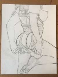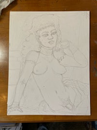 Softer Works: graphite blended sweetly over semi erotic works. Desire- is it a muse or a role model? The fantasies and characters I design- I want to be in them, and be them.