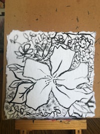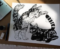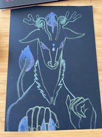 Printmaking: Drypoint etching, linocut, and reverse drawing techniques used to explore mythology, identity, and creature design.