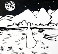 Self Portait as Sea Monster, linocut print