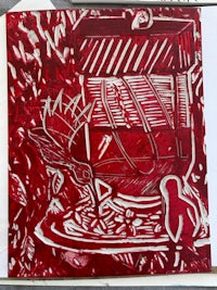 Bikini Demon, linocut stamp