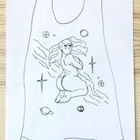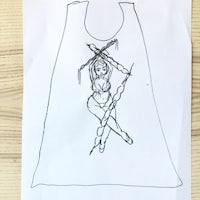 Bikini Demon, linocut print on clothing, dye markers