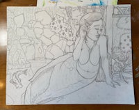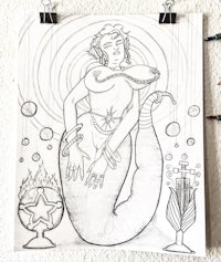 Mermaid under Wisteria, graphite