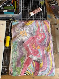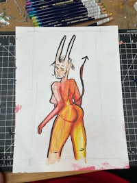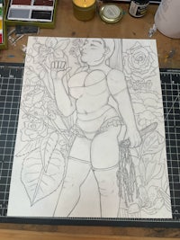 Softer Works: graphite blended sweetly over semi erotic works. Desire- is it a muse or a role model? The fantasies and characters I design- I want to be in them, and be them.