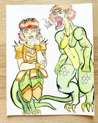 Character Designs: Ink and watercolor character concepts exploring fantasy, fashion, humor, and creature design.