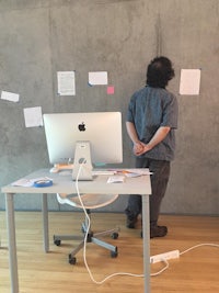 I constructed the wooden table myself in woodshop — an unexpectedly torturous experience. A dangerous space of nicks, bumps, and sharp corners, echoing my poor proprioception and the embodied discomfort of the original work.