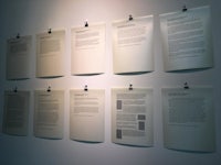 THE LIST, Pearlescent gold paper, black ink, viewer submissions, computer, scrap paper, legal consultations